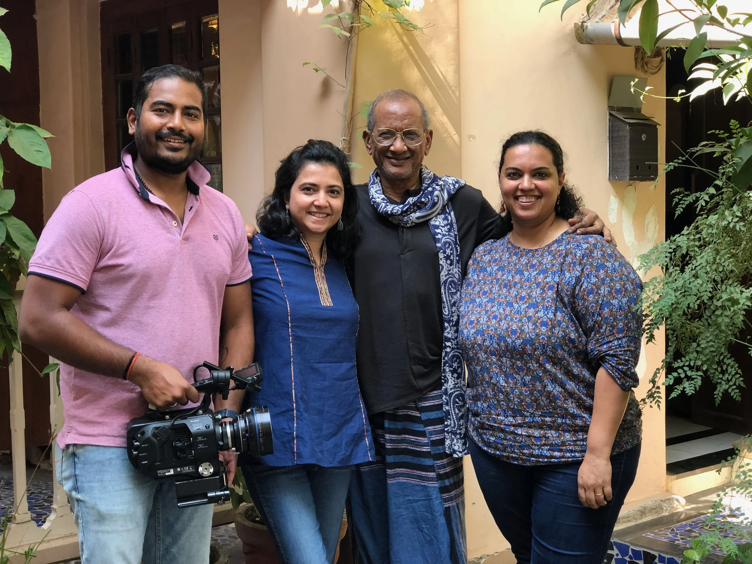 With subject James Fereira, cinematographer Anup Singh and Producer Amrita Singh, for PERSIS, 2019. Mumbai.